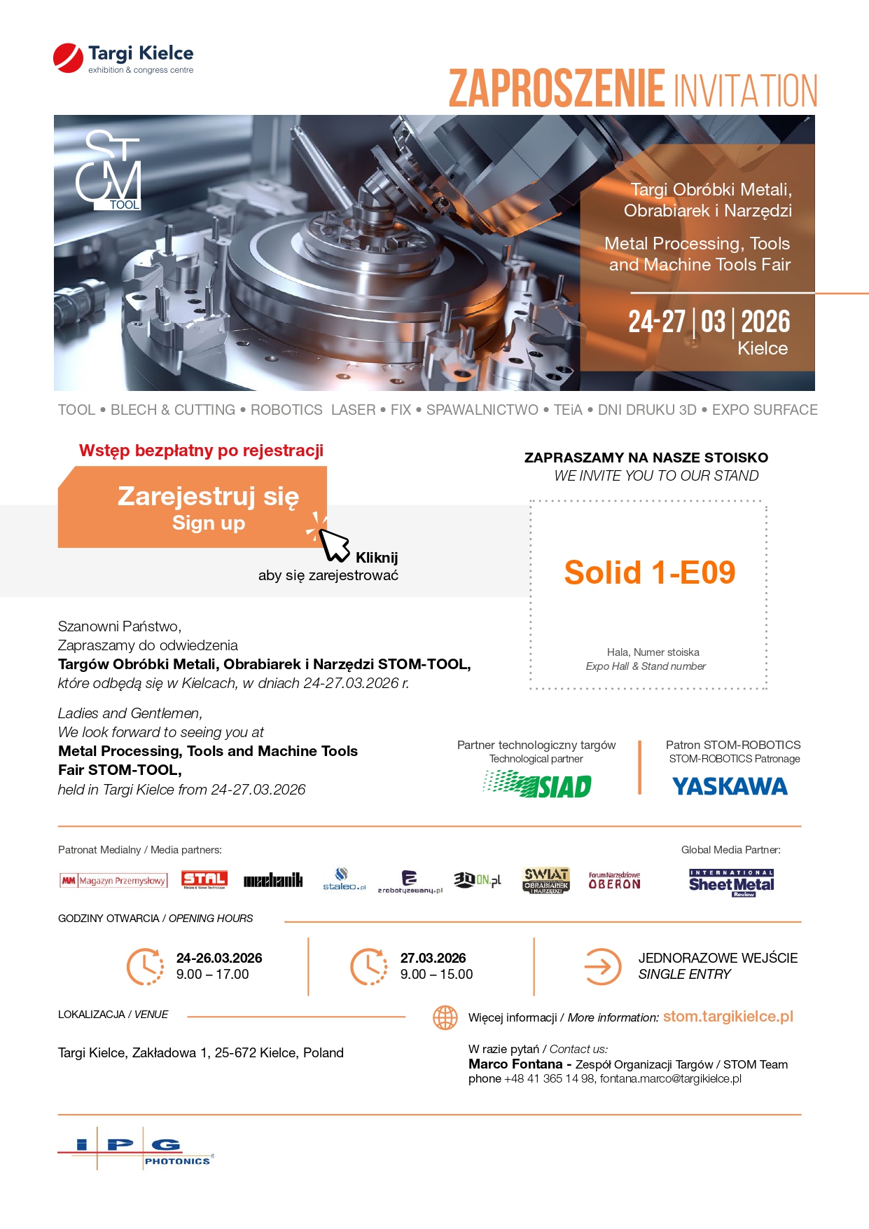 Już wkrótce hale targowe STOM-TOOL w Kielcach wypełni gwar i ożywienie! Przypominamy, od 24 do 27 marca, na naszym stoisku nr 1-E09, będzie można spotkać się z naszymi technologami oraz zobaczyć standardowe jak i nowe rozwiązania naszych dostawców. W tym roku będzie nas więcej niż kiedykolwiek, a wszystko to zasługa naszych dostawców, którzy w tym roku będą nas wspierać na naszym stoisku w większej ilości niż zwykle.